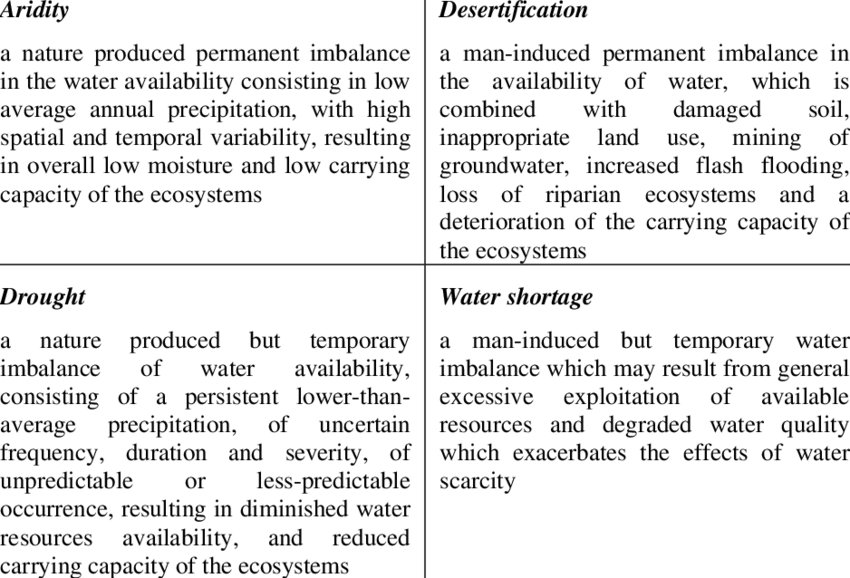 | Aspects | Drought | Desertification |