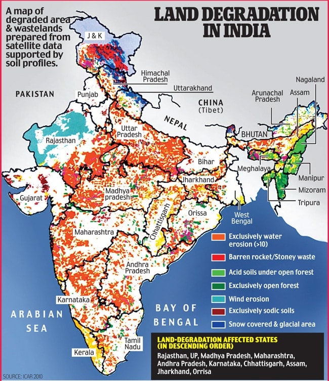 - Jharkhand, Rajasthan, Delhi, Gujarat and Goa have more than 50% area under desertification/land degradation.