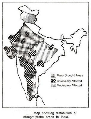 - Moderate drought conditions affect 46% of the total drought-prone area; these areas are Orissa, central-north Madhya Pradesh,. Chhotanagpur, Jammu and Kashmir and central- east Tamil Nadu.