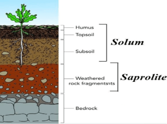 - It has two components: the solum and the saprolite.