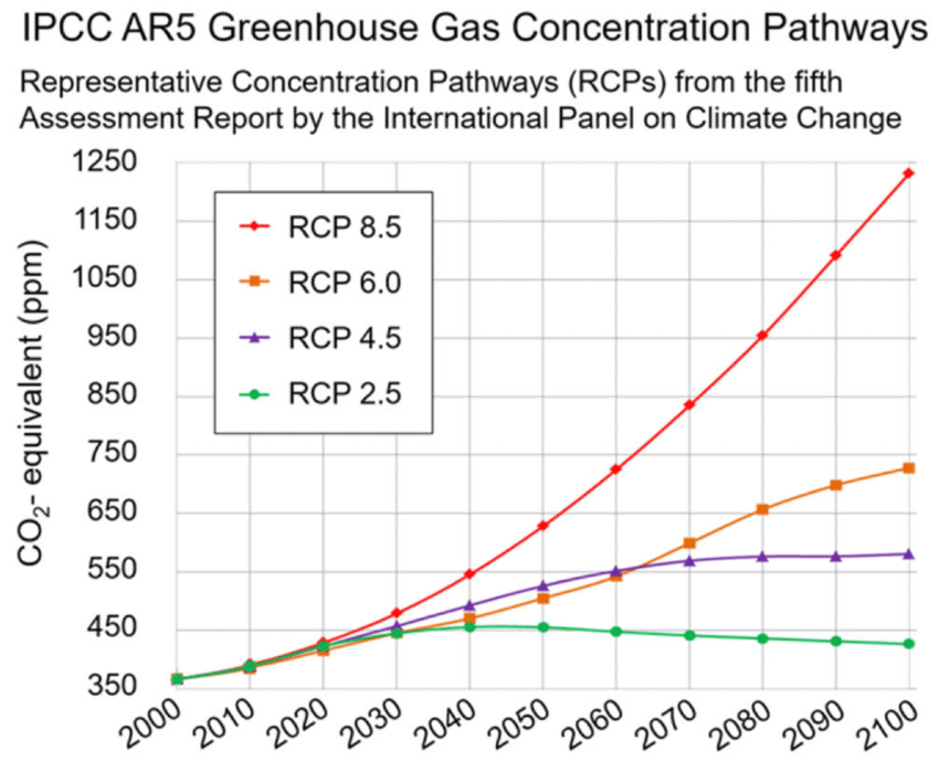 - IPCC द्वारा अपनी पांचवीं आकलन रिपोर्ट (AR5) में RCP को 21वीं सदी में ग्रीनहाउस गैस उत्सर्जन, वायुमंडलीय सांद्रता, वायु प्रदूषक उत्सर्जन और भूमि उपयोग के चार अलग-अलग परिदृश्यों की रूपरेखा तैयार करने के लिये पेश किया गया था।